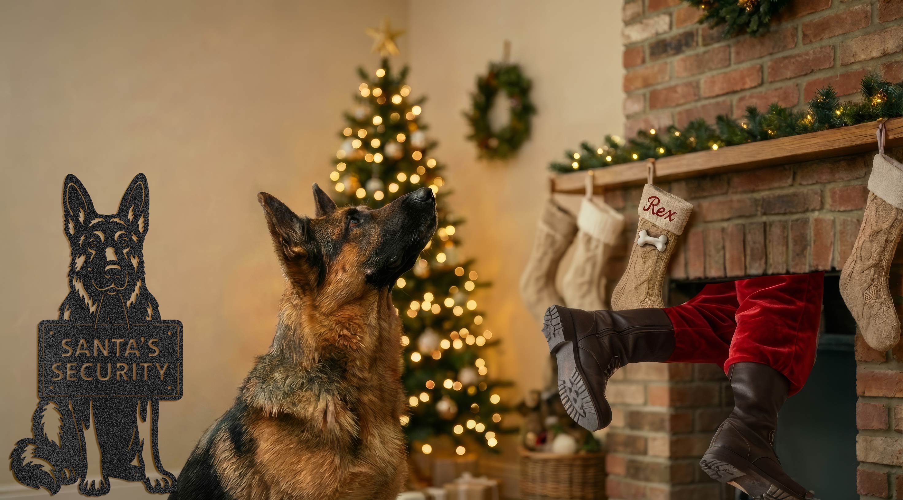 German Shepherd Christmas Metal Sign – Santa’s Security Wall Decor